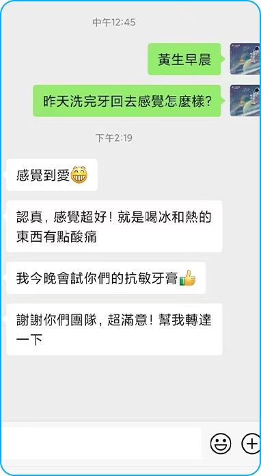 而且,很多人都會潔牙後的一兩天感覺牙齒酸痛嘅感覺,對冷熱酸甜嘢都會敏感,呢係因為牙頸同牙根部本身就比較敏感,潔牙後失去了牙結石的隔絕“保護”,突然完全暴露俾外界,就會有各種奇怪嘅感覺。如果你牙齒係健康嘅,過一段時間,奇怪嘅感覺會消失。遇到呢種情況唔洗慌張,輕微嘅情況只需要幾日內避免冷熱刺激,用專業嘅防過敏牙膏,就可以慢慢適應,嚴重嘅話可以去醫院做防敏塗布治療。